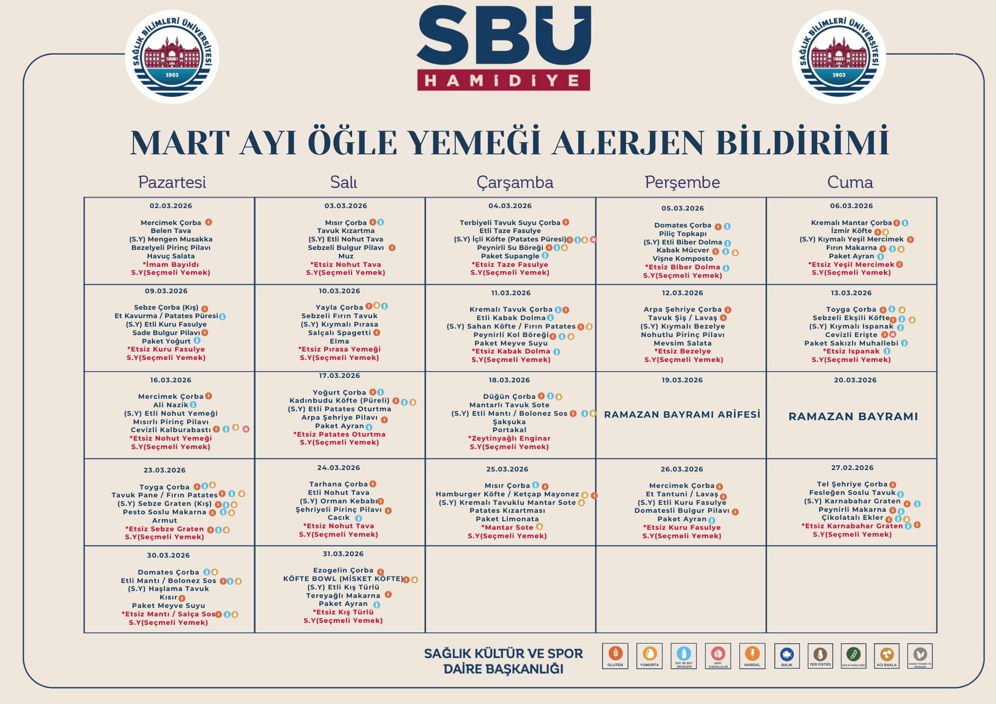 Hamidiye Külliyesi Mart Ayı Yemek Listesi